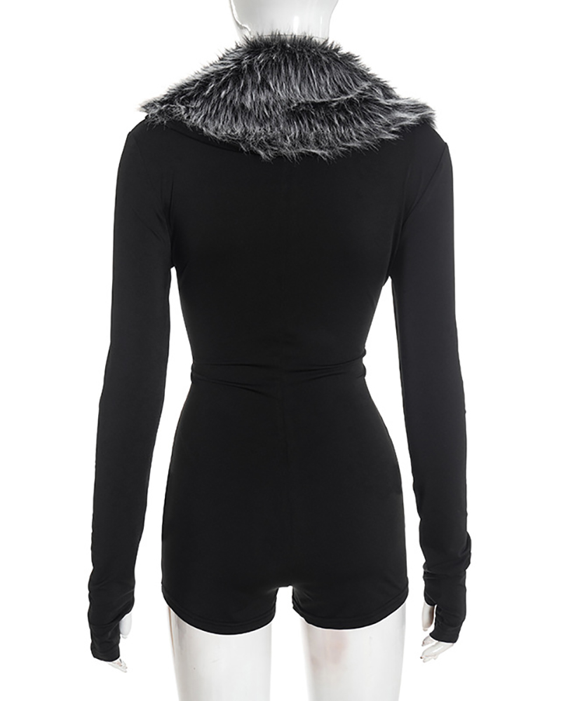 Long Sleeve Fur Women Short Jumpsuit S-L