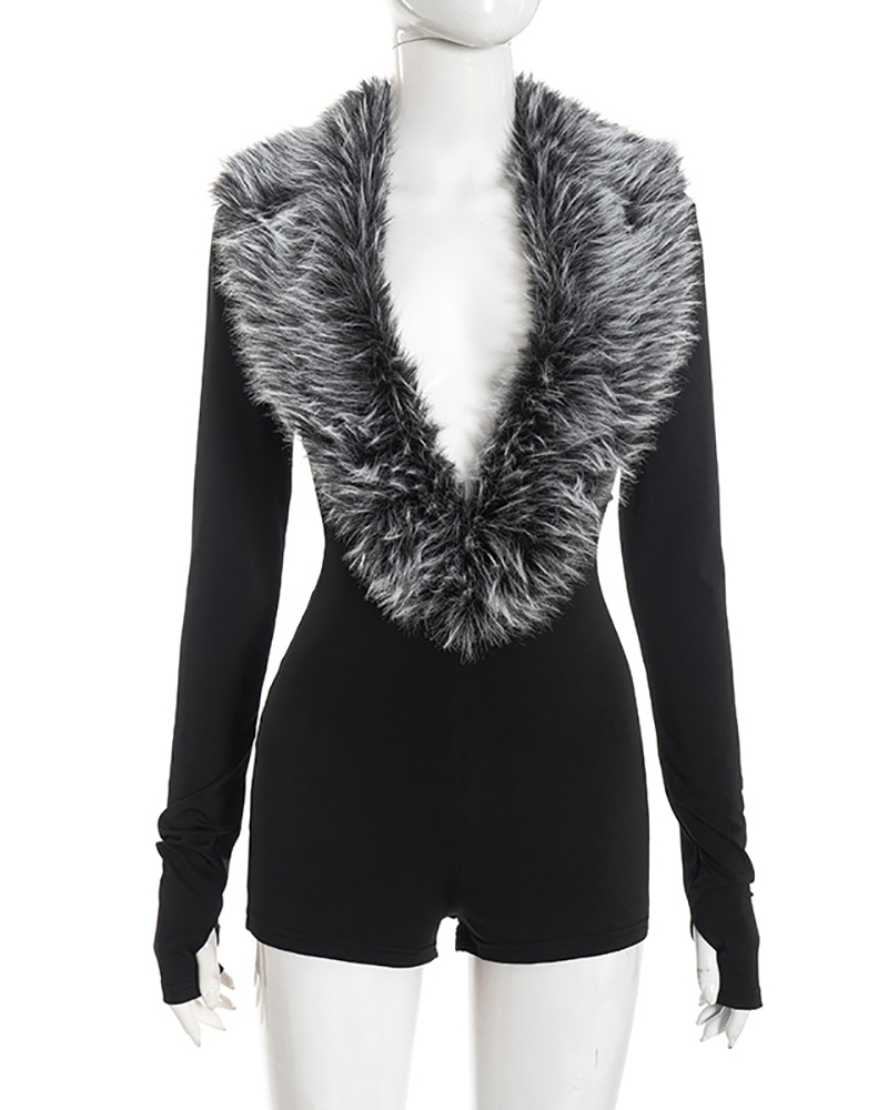 • Product Name: Long Sleeve Fur Women Short Jumpsuit S-L